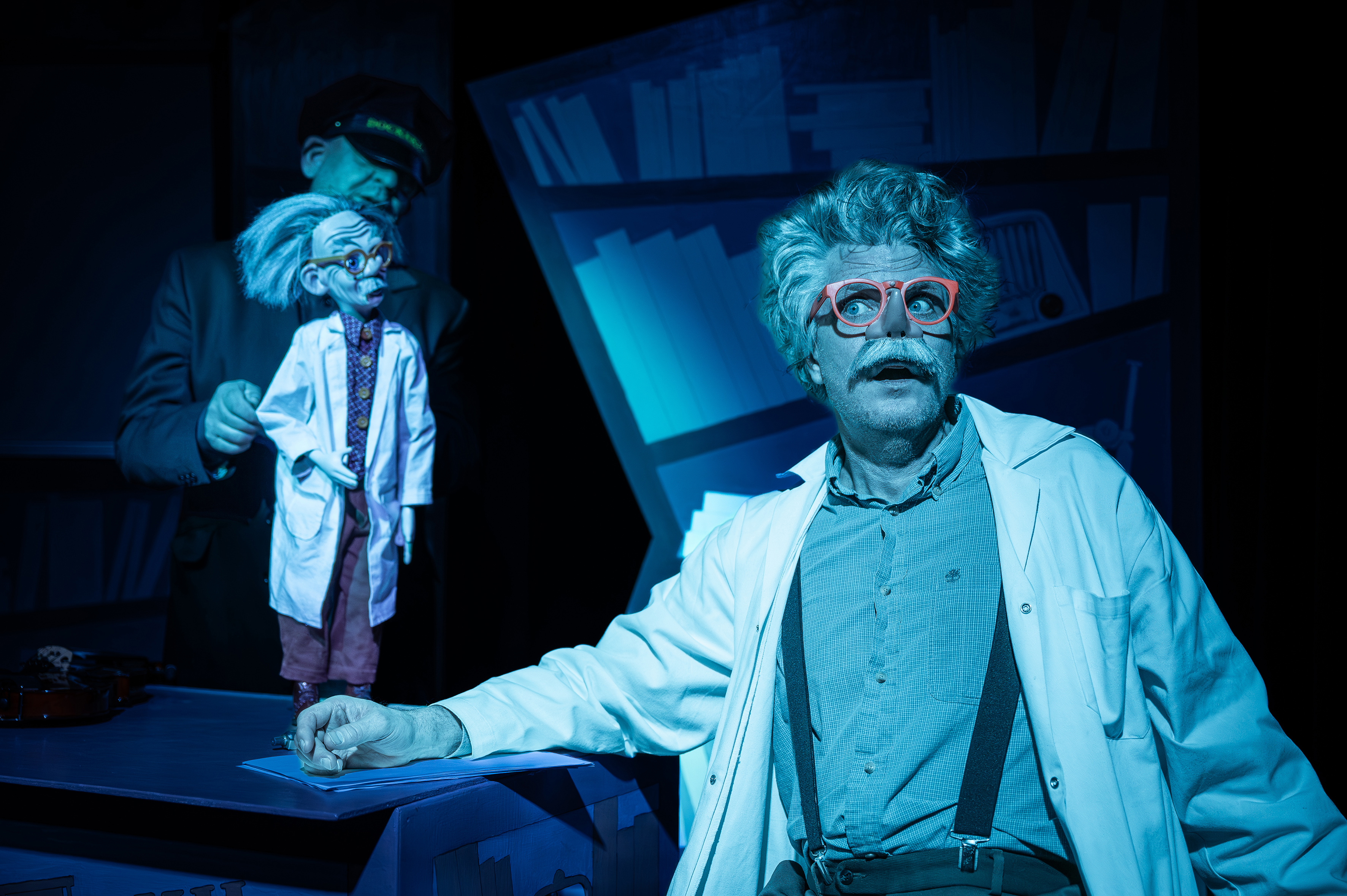 Pygméteatern bjuder på en dråplig och tankeväckande historia om hur vetenskap och fantasi möts. Två människor, en docka och skuggspel.